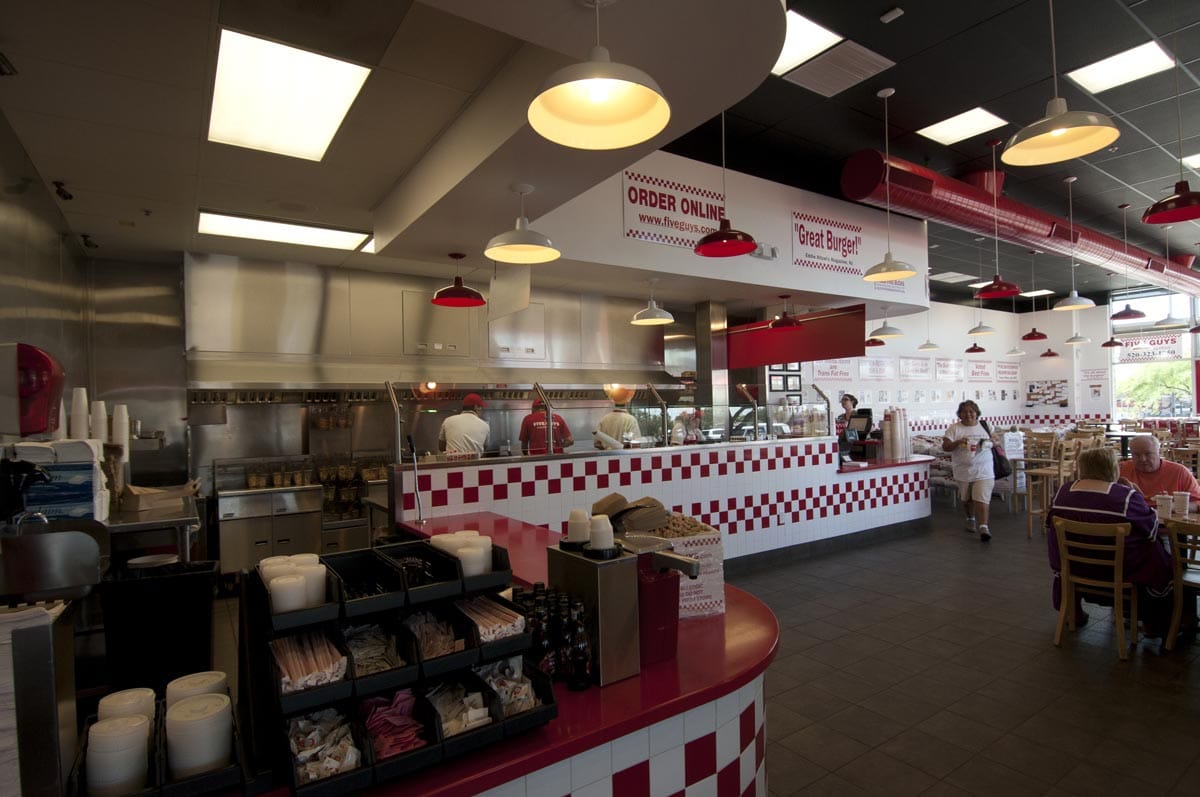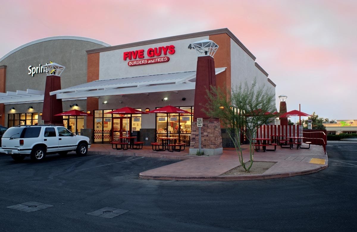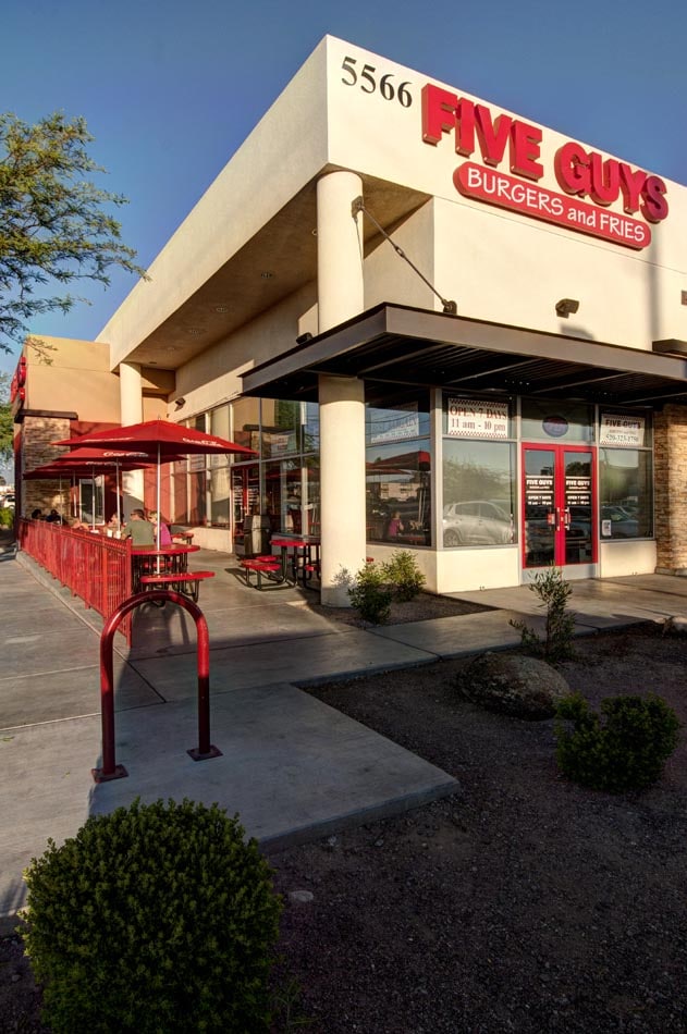 These tenant improvements involved multiple Tucson locations for Five Guys Burgers and Fries. Work varied by location and ranged from demolition and renovation of existing retail space to build-out of new shell buildings. These projects represent an ongoing partnership with this popular gourmet burger chain with locations in the U.S., UK and Canada.